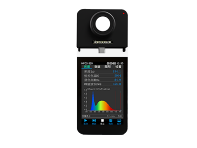 HPCS-330是一款经济型色温照度计,集光谱、照度、色温、显色指数、波长、色坐标、色容差等测量功能参数于一体。探头和主机采用分体式磁吸设计、蓝牙通讯,主机采用3.5英寸液晶屏,广泛家庭、学校 、商超等场合的光照测量,拥有无线蓝牙分体技术,探头可单独蓝牙连接微信小程序,进行数据测量查看 与保存,多探头485连接通讯技术,可多点数据测量与检测。
