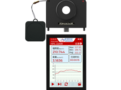 HPL225IR系列是一款为测量红外光波段850nm与940nm辐照度和能量累积的设备,用于红外夜视光源红外遥控发射管、红外激光等测量,拥有无线蓝牙分体技术,探头和主机可USB和蓝牙连接,进行数据测量查看与保存,可多点数据测量与检测。